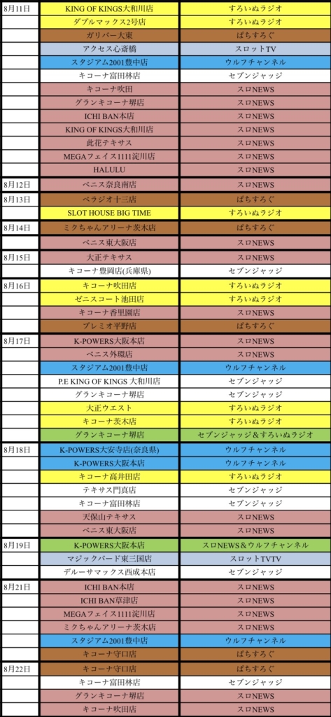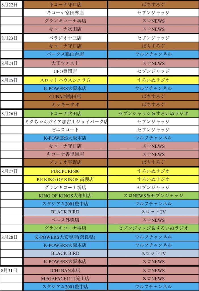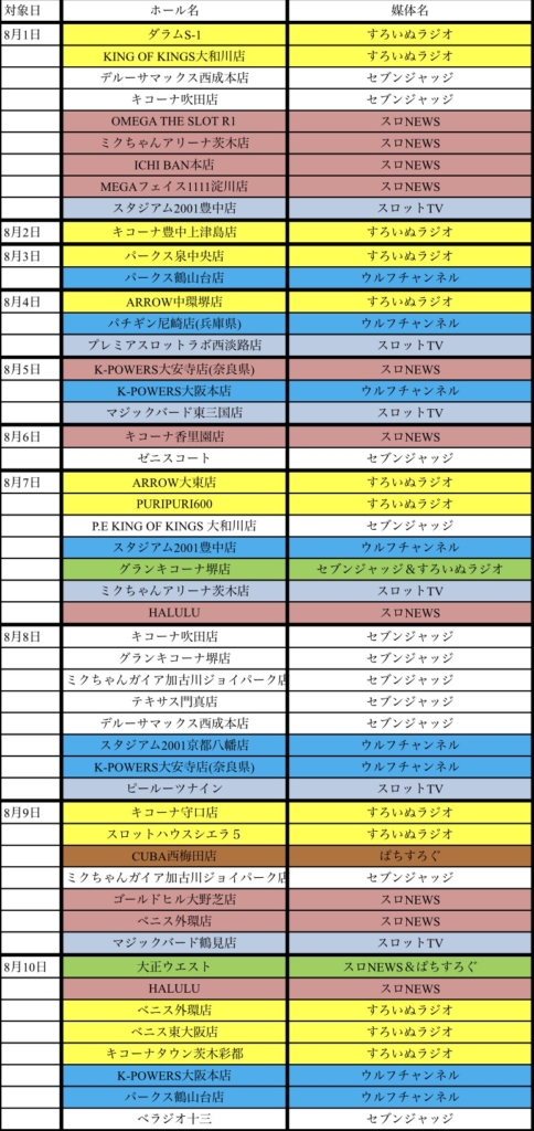 8月 4日 日曜日 【協賛カレンダー】2019年8月 slotkansai 大阪特定日情報 関西イベント情報 お待たせいたしました。2019年8月の協賛系カレンダーを公開いたします。 ホール選びの参考にしてみてください